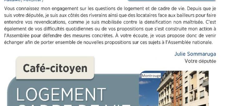 Café-débat sur le logement avec Julie Sommaruga, votre députée le 30 mai à Bagneux