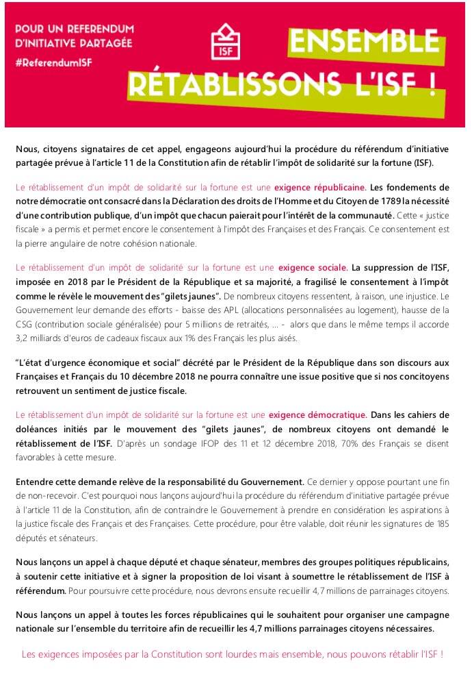 Rétablissons l’ISF ! par Parti Socialiste Malakoff · Publié 19/12/2018 https://lessocialistes.fr/wp-content/uploads/2018/12/Livret-Referendum-ISF.pdf → Partagez !